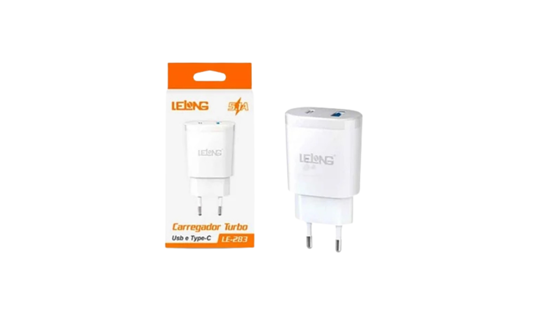 CARREGADOR TURBO P CELULAR COM USB E USB-C 5.1A LE-285 LELONG
