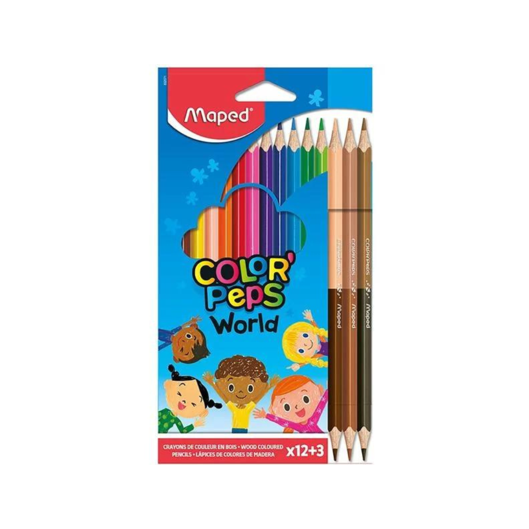 LAPIS DE COR 12 CORES + 3 LAPIS TONS DE PELE COLORPEPS MUNDO MAPED