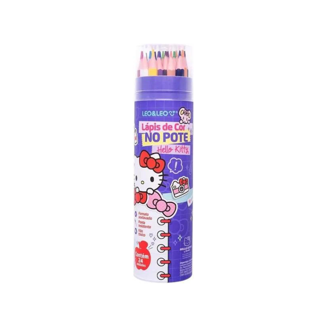 LAPIS DE COR NO POTE 24 CORES SEXTAVADO HELLO KITY LEO E LEO